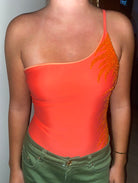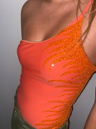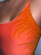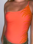 Denne sofistikerede one-shoulder badedragt taler direkte ind i den nye badedragt trend med sine håndbroderede koral palietter.
