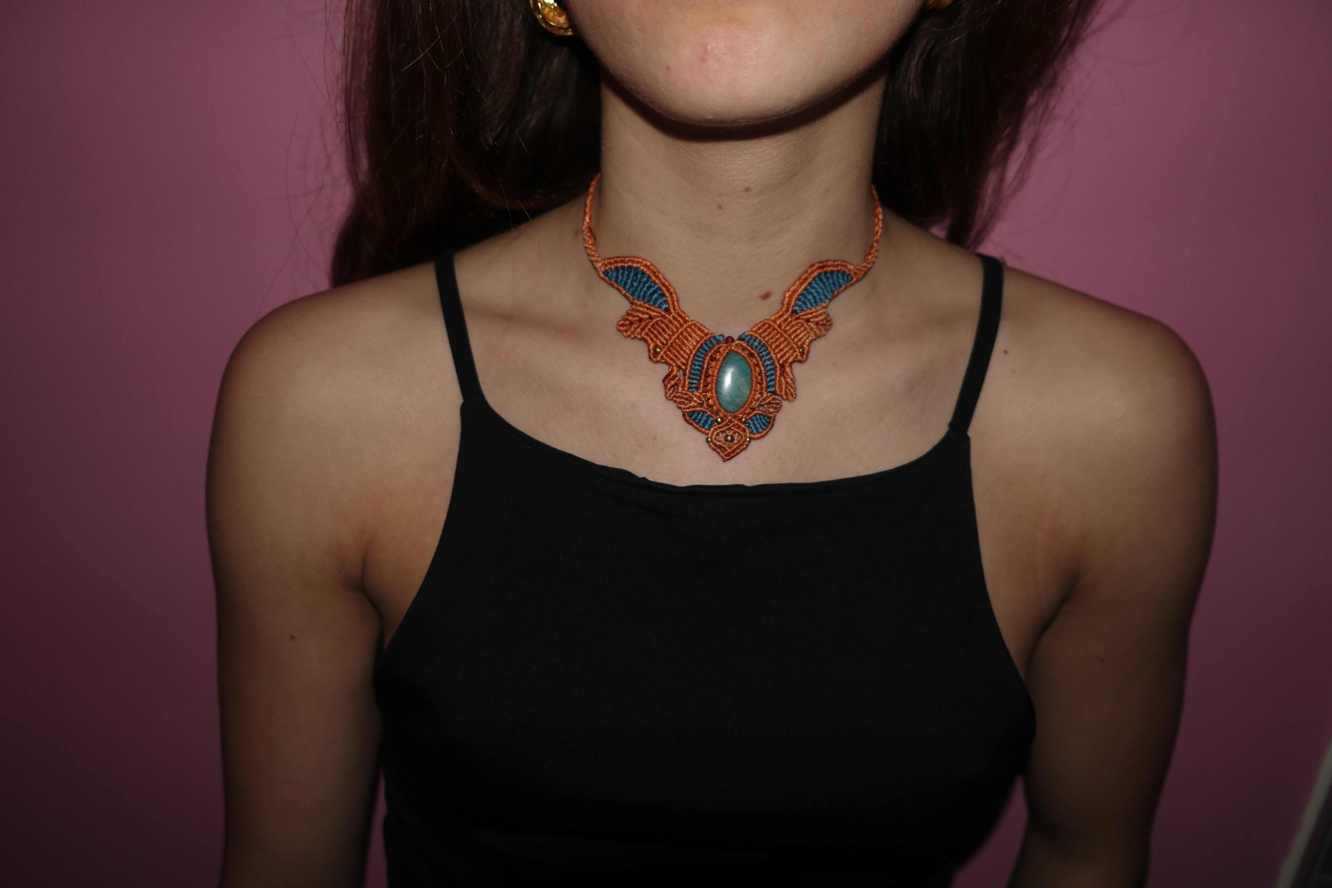 Bohemian Handmade Macrame Chocker - Orange / Blue