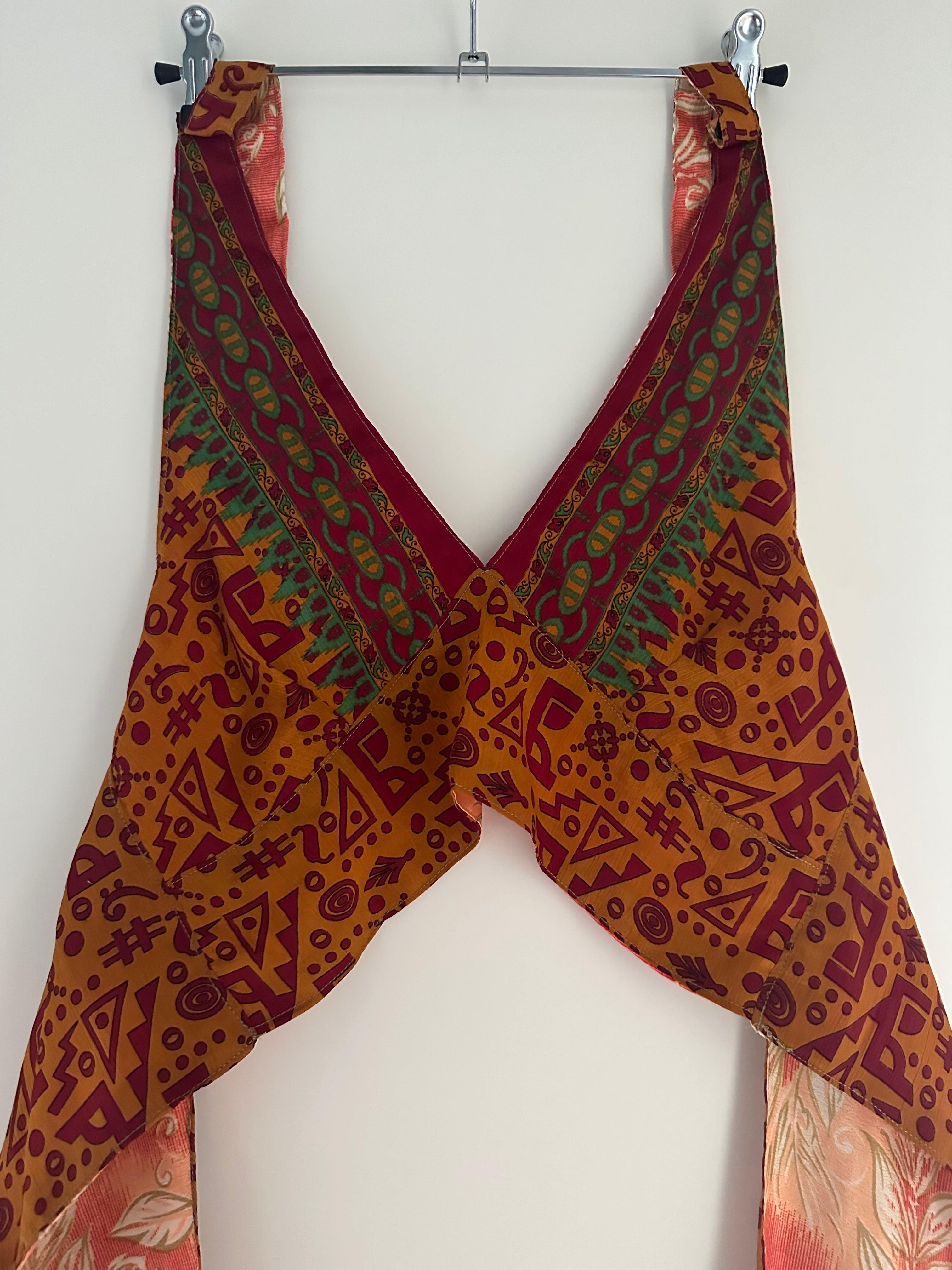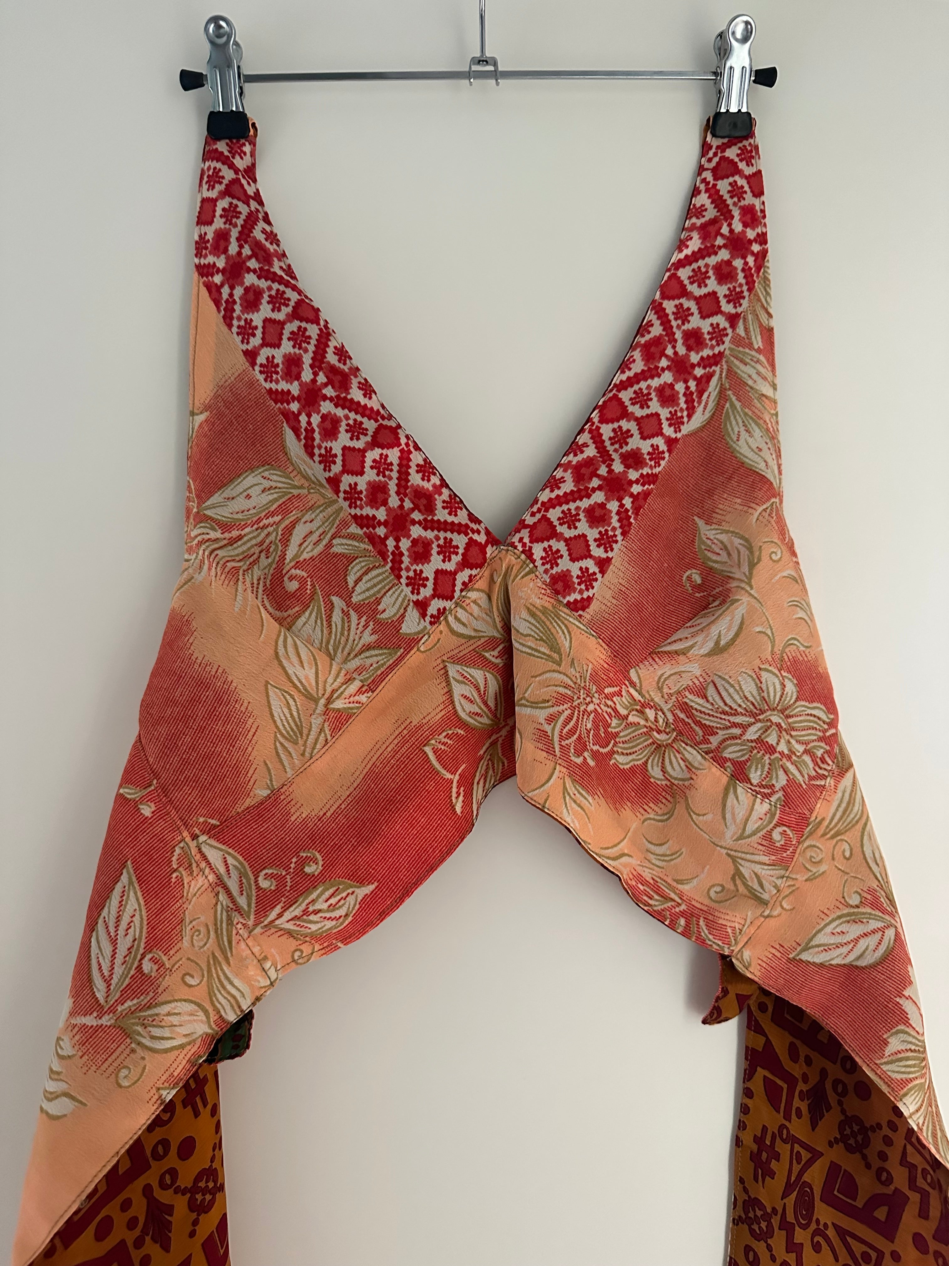 Denne vintage silke vendbare top er den perfekte blanding af stil og alsidighed. Designet i én størrelse passer til alle gør det til et alsidigt stykke, der kan bæres af alle, mens det vendbare design giver mulighed for to forskellige looks i ét. Fremstillet af vin af høj kvalitet