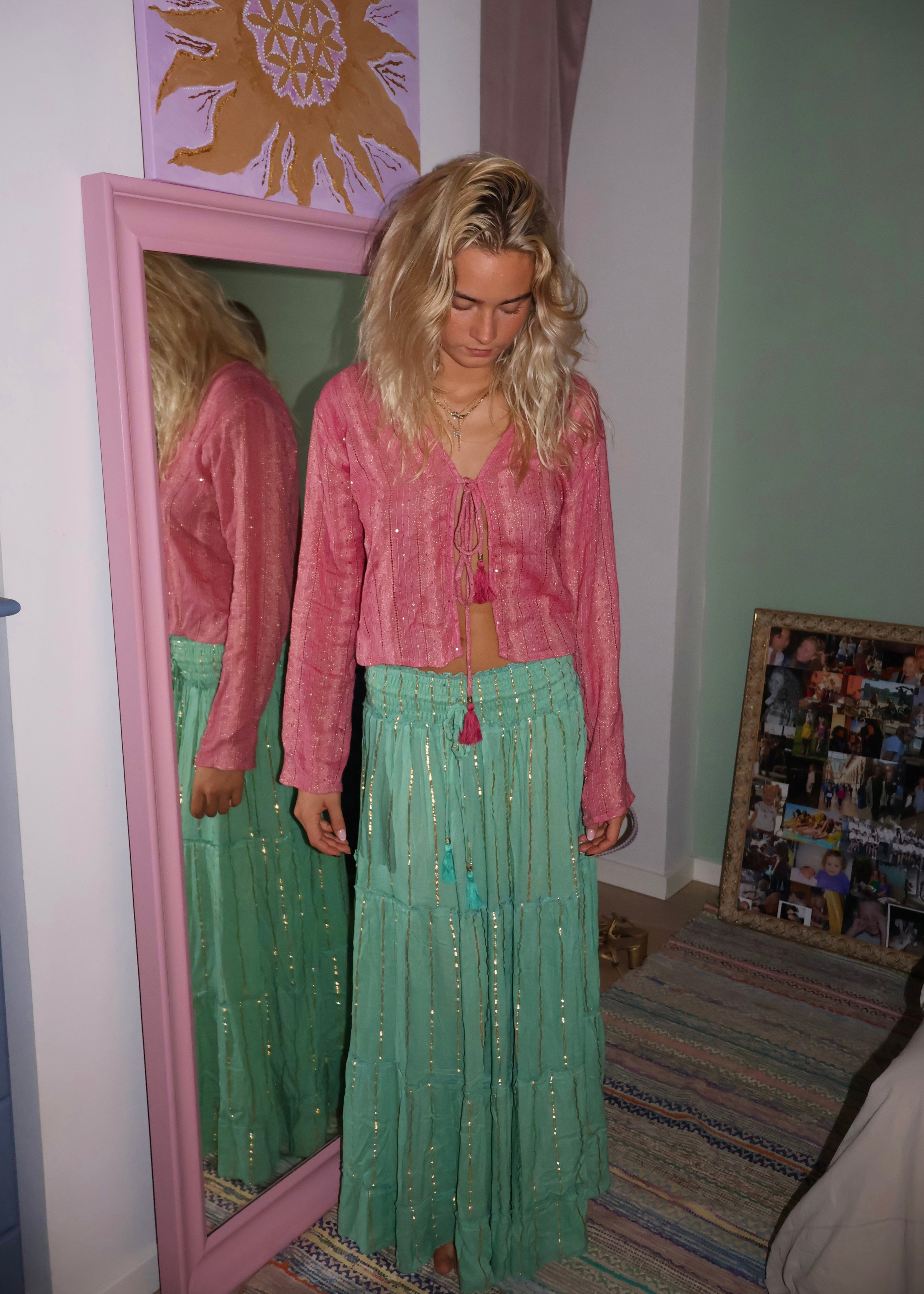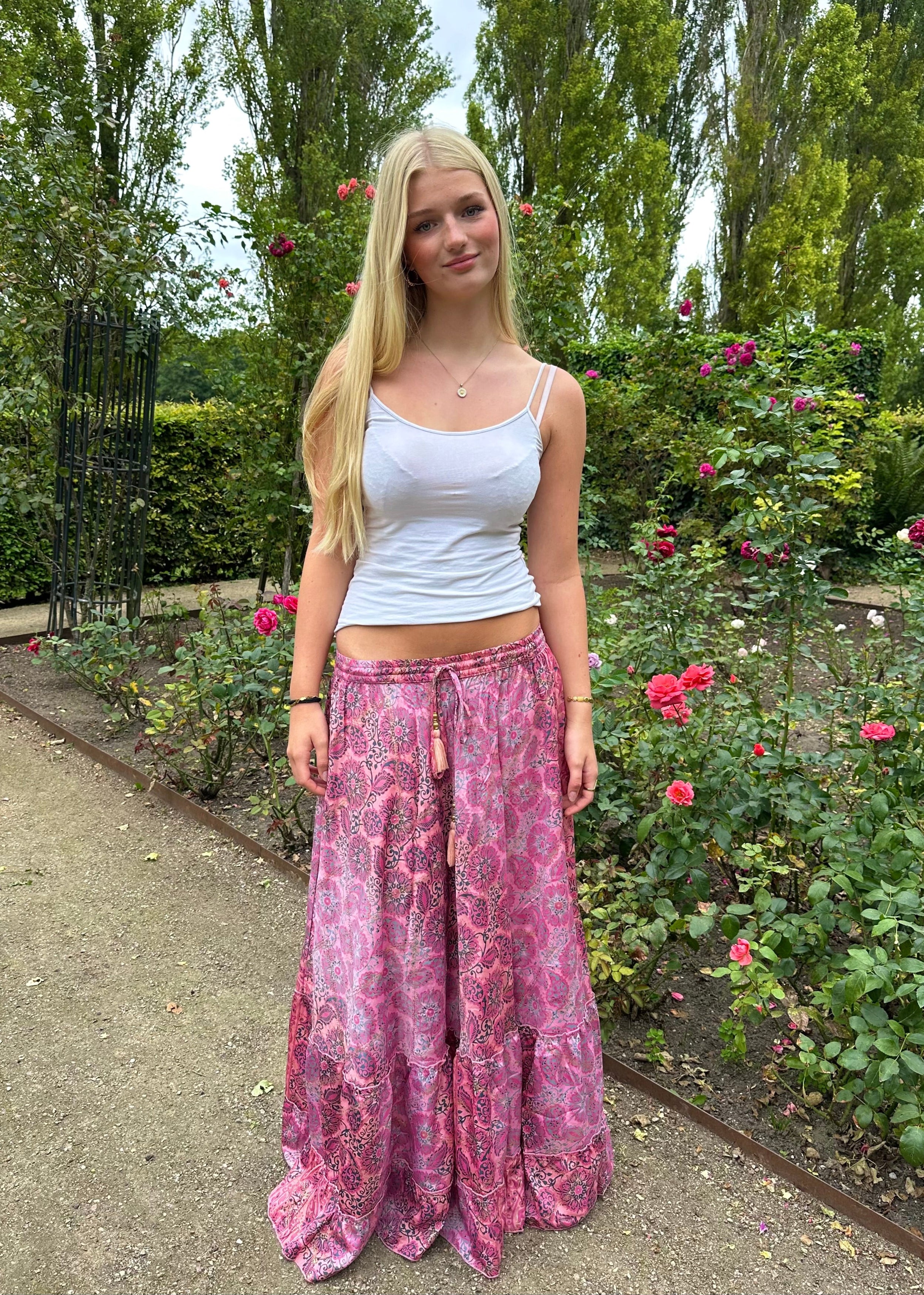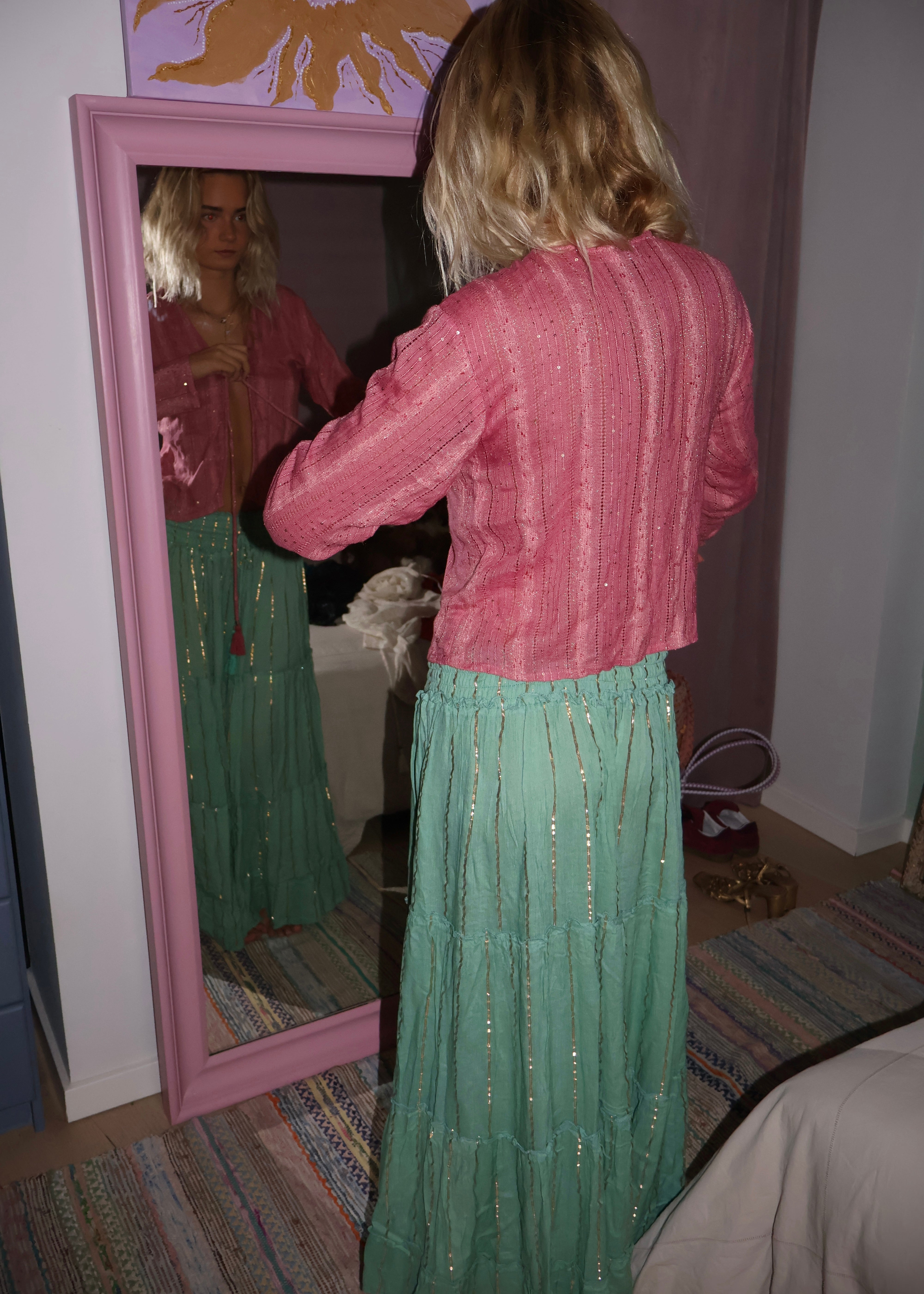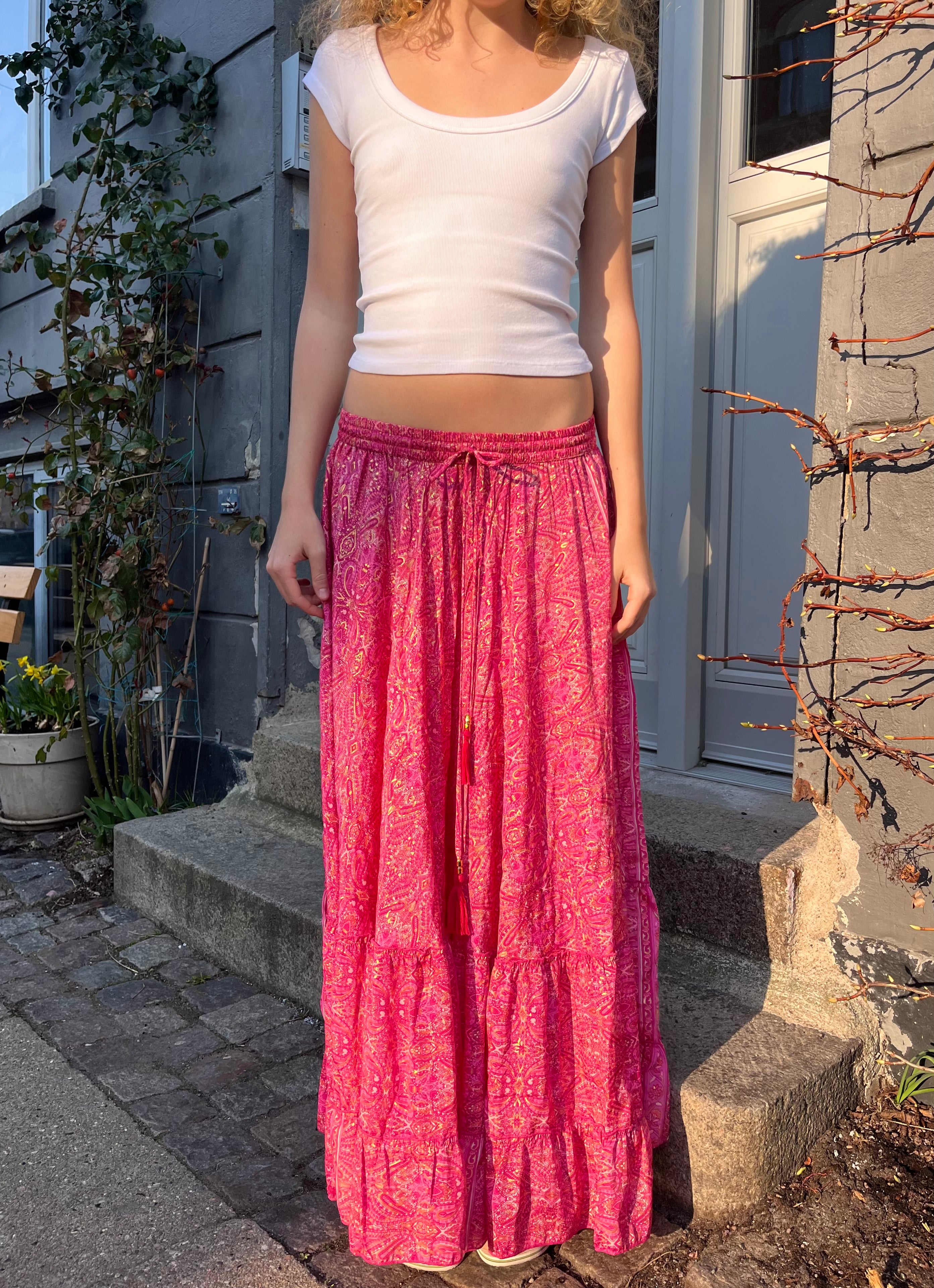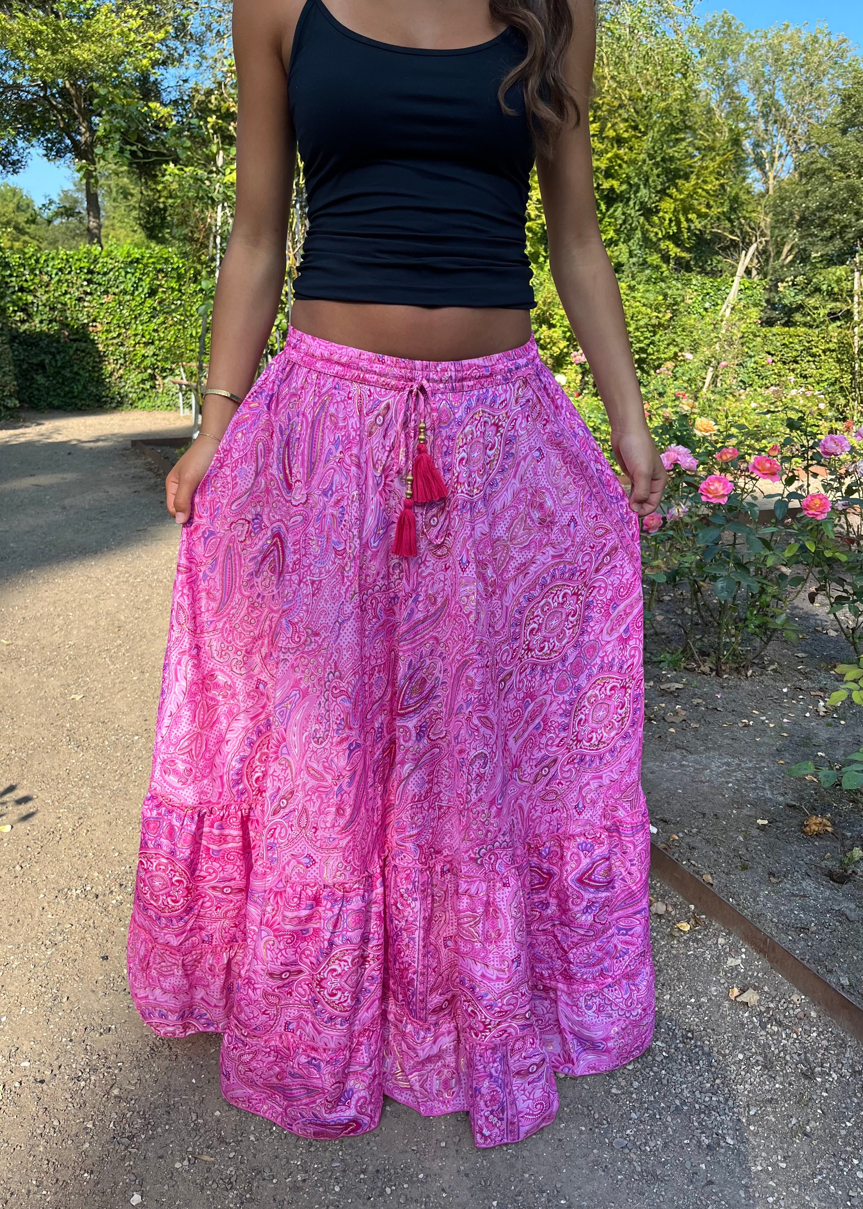 Pink Maxi Skirt with Gold Foil