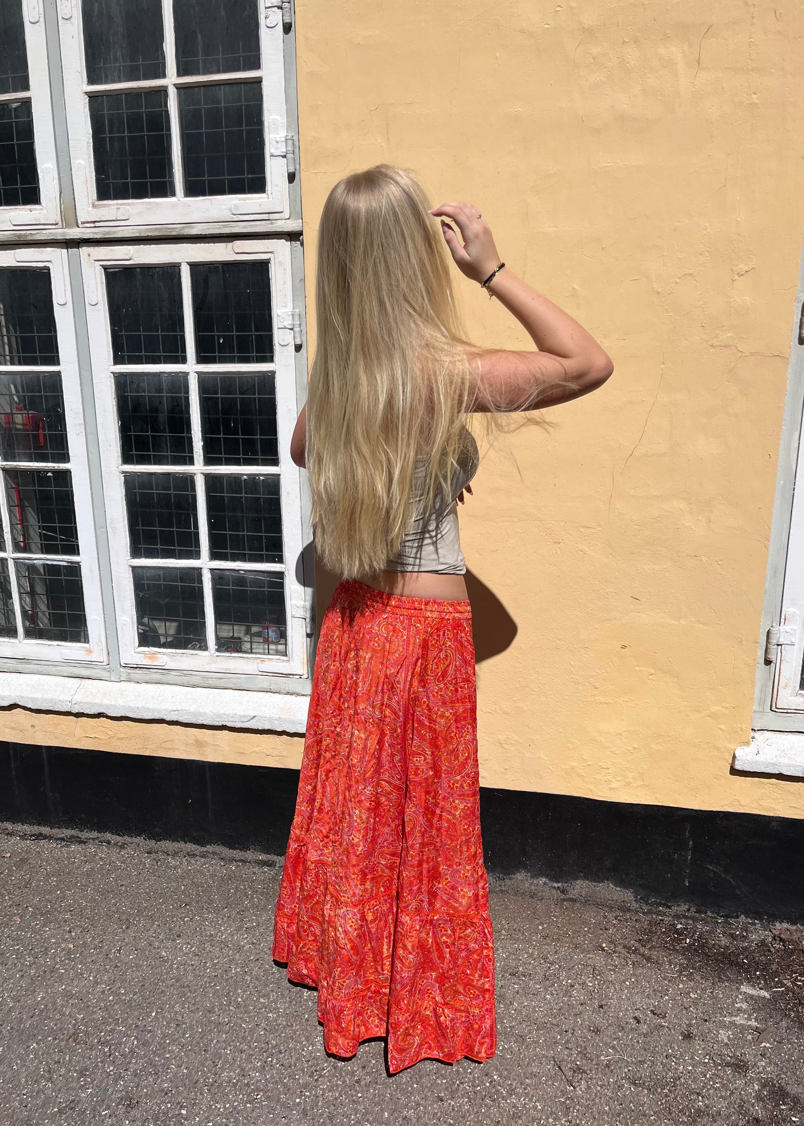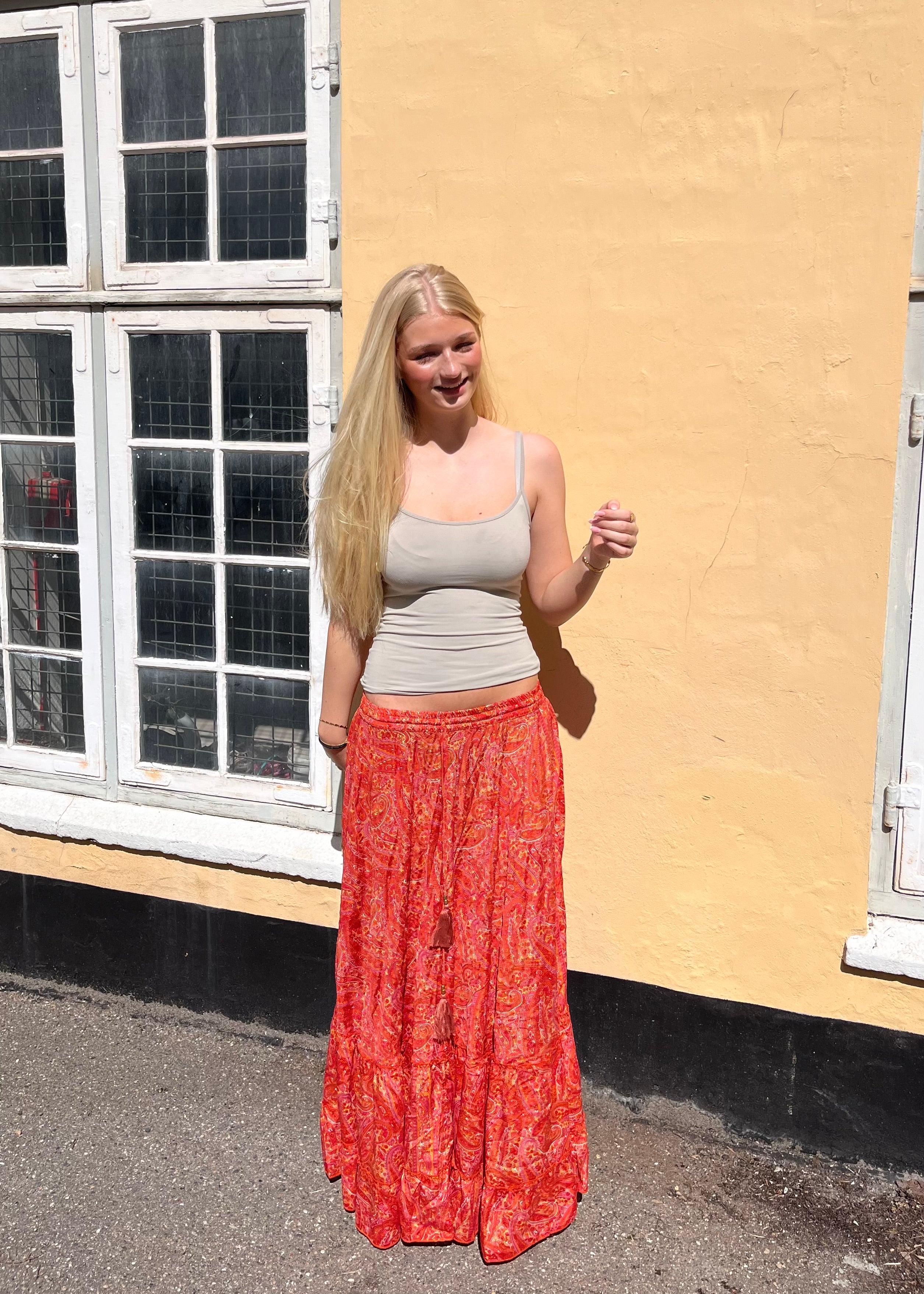 Orange Maxi Nederdel med Guldfolie
