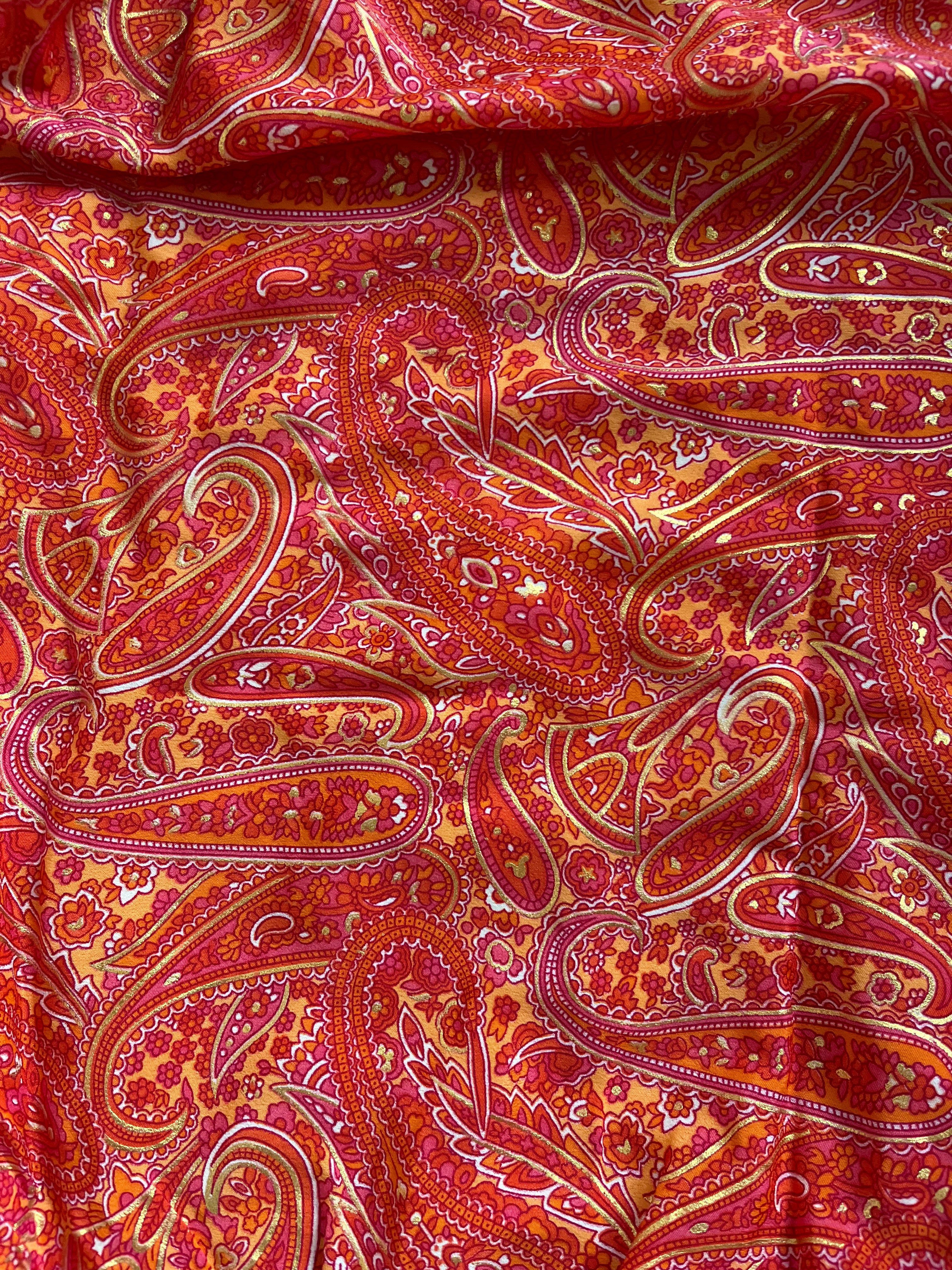 Orange Maxi Skirt with Gold Foil